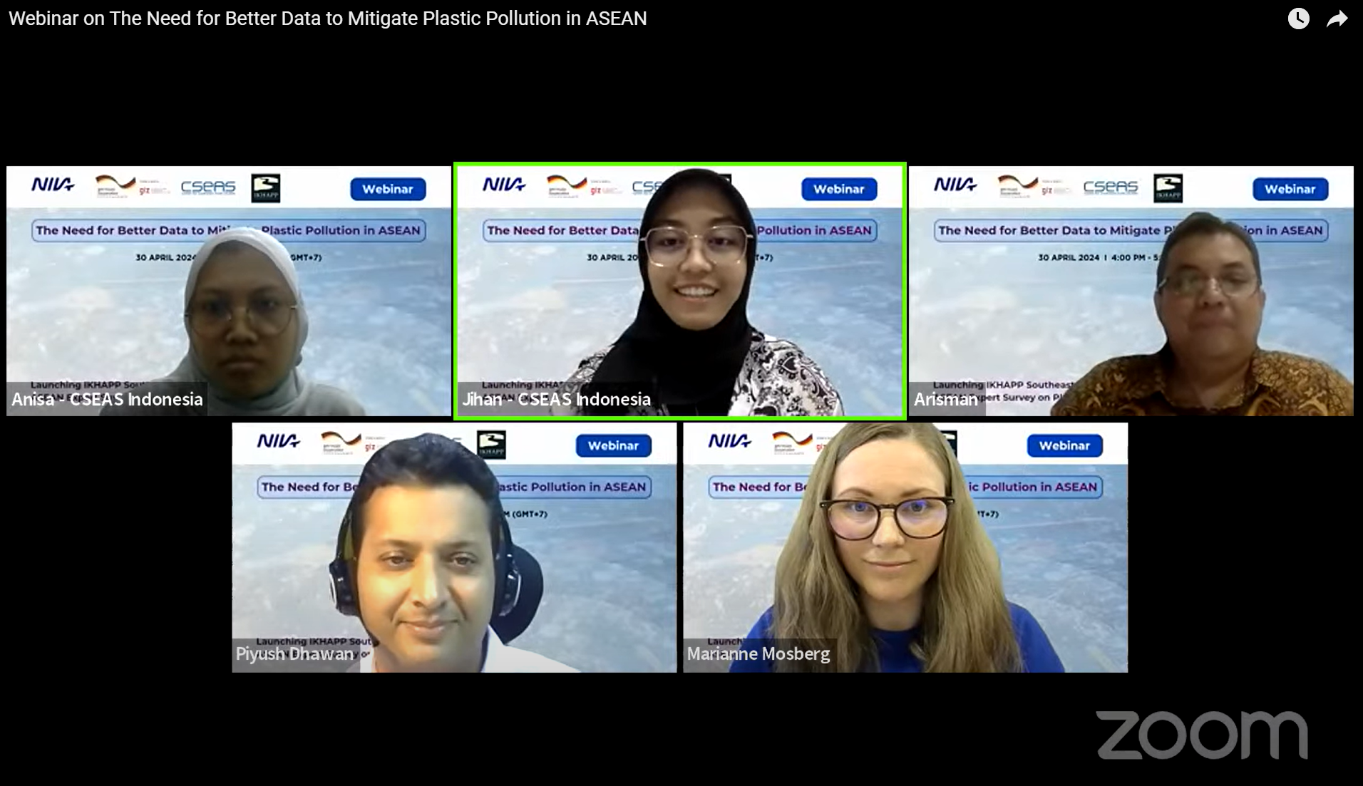 The webinar introduced the Survey for ASEAN Experts on plastic waste management and launched IKHAPP’s Southeast Asia Office, providing a platform for regional collaboration, knowledge exchange, and capacity building in ASEAN. It consisted of presentations from Dr. Arisman, Executive Director, CSEAS Indonesia, Piyush Dhawan, Principal Advisor and Project Director, GIZ for ASEAN-German Project on Reduce, Reuse and Recycle to Protect Coral Reef and Marine Environment (3RproMar) and Marianne Mosberg, Researcher, Section for International Environment and Development, NIVA. The session was moderated by Jihan Khairun Amala, Program Manager, CSEAS Indonesia.
